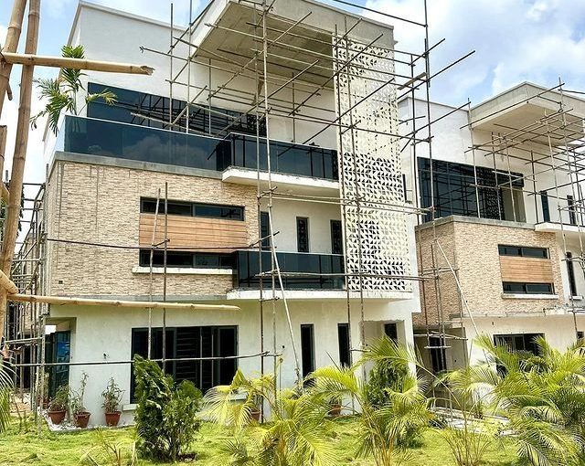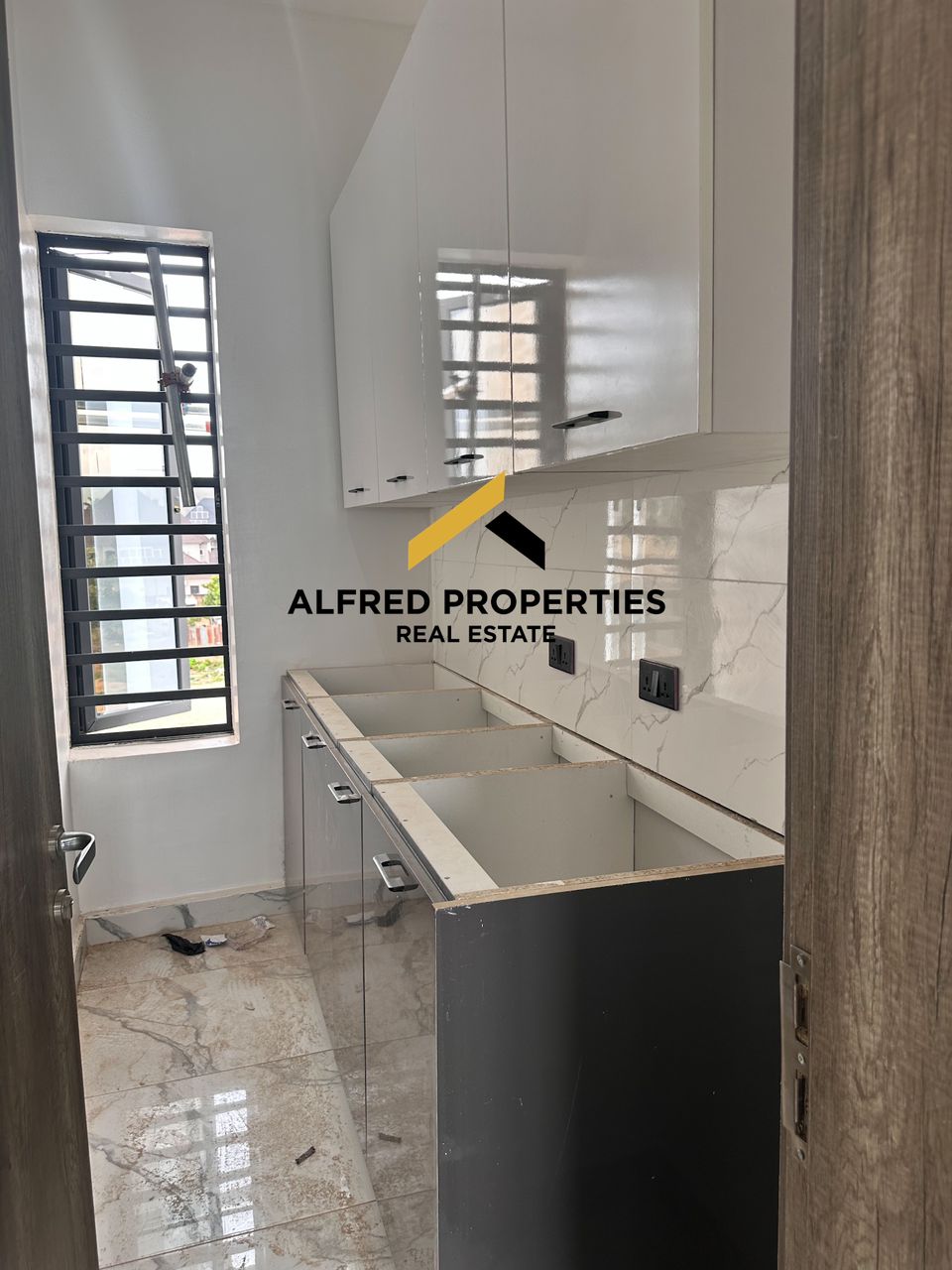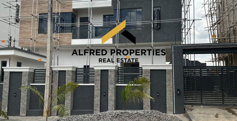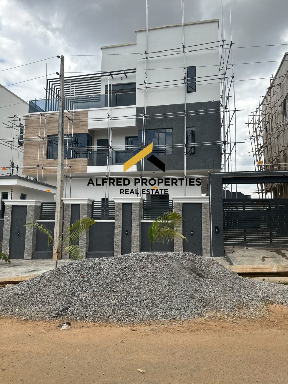 This fully automated 5-bedroom detached smart home with a BQ, smart features, wet kitchens, dry kitchens, all rooms en-suite, a swimming pool, a guest toilet, and an inbuilt speaker.